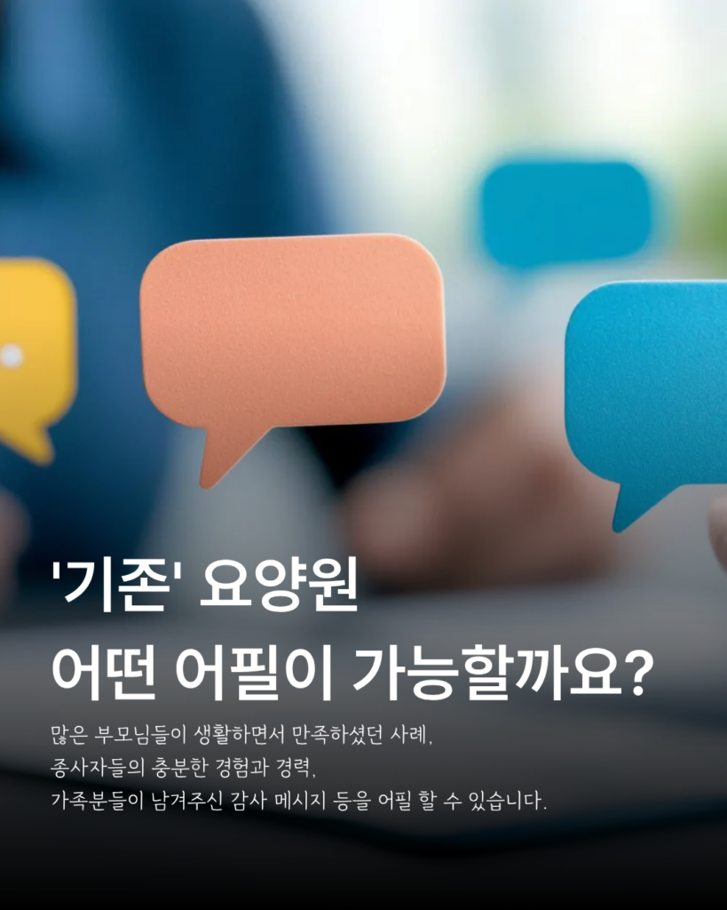 오랜 운영 경험, 어르신 상태를 세심하게 살피는 관찰력, 익숙한 생활 리듬을 유지할 수 있는 안정감, 보호자와의 꾸준한 소통, 실제 생활 중심의 케어는 모두 기존 기관만이 보여줄 수 있는 강점이 될 수 있습니다. 이런 요소는 단순히 오래 운영했다는 말로 끝나는 것이 아니라, 홈페이지와 블로그, 기관 소개 콘텐츠를 통해 구체적으로 표현될 때 더 큰 설득력을 가집니다.